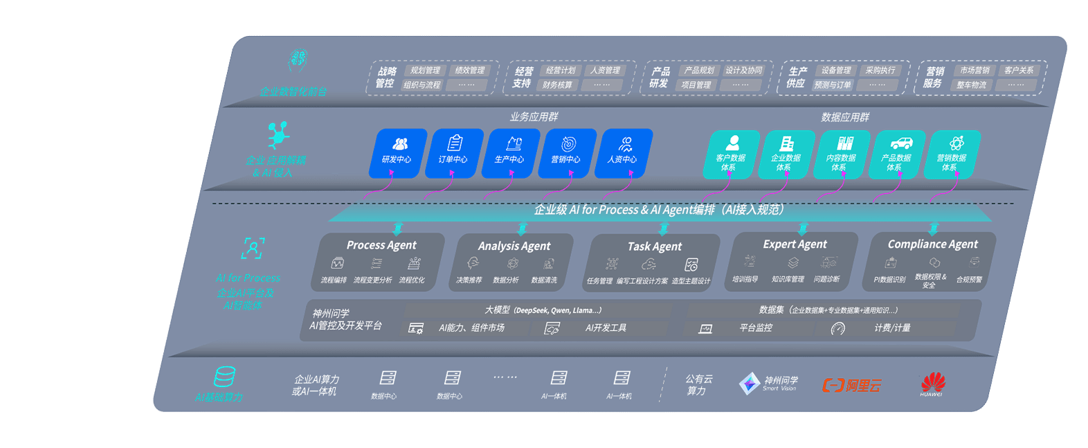 金鼎国际问学智车解决方案是一套基于AI技术的汽车行业智能化系统,,,,覆盖从底层算力到顶层AI应用的全栈方案。。方案由算力层、、模型层和应用层组成:算力层,,,方案支持多种一体机配置,,,,具备云端灵活部署、、、多云适配以及动态优化计算资源的能力;模型层,,金鼎国际问学平台版提供了企业级AI应用一站式构建与管理平台,,支持基于后训练强化技术的汽车企业专属模型的训练、、、、评测和运营;应用层,,金鼎国际问学DeepSeek版提供包括超级员工、、、智能招采、、智能营销、、、、智能客服、、、AI for BI等一系列解决方案,,,可助力汽车行业实现数字化转型,,,,让管理更智能、、响应更敏捷。。