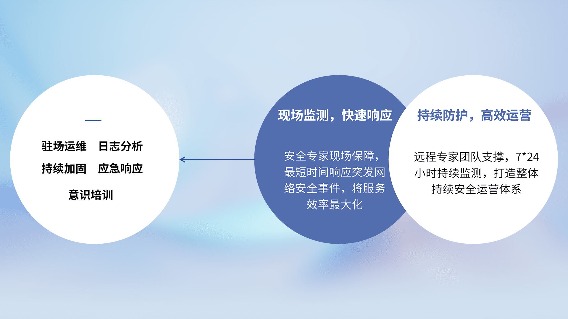 针对客户行业特性,,提供专属的一站式安全管理服务,,,帮助客户全面感知网络空间威胁,,,,通过安全专家的线上、、、、线下防护支持,,实现风险闭环,,,将安全保障常态化,,,,为客户打造常态化安全运维运营服务。。。